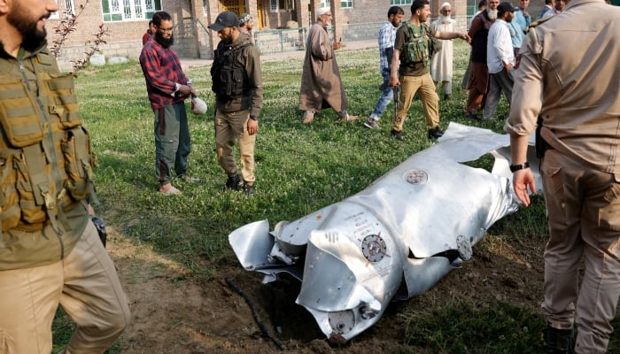 Debris identified as an external fuel tank, potentially from Rafale or Mirage aircraft, was found in the village of Wuyan in IIOJK. However, it remains unconfirmed if this debris is linked to an aircraft downed by enemy fire.